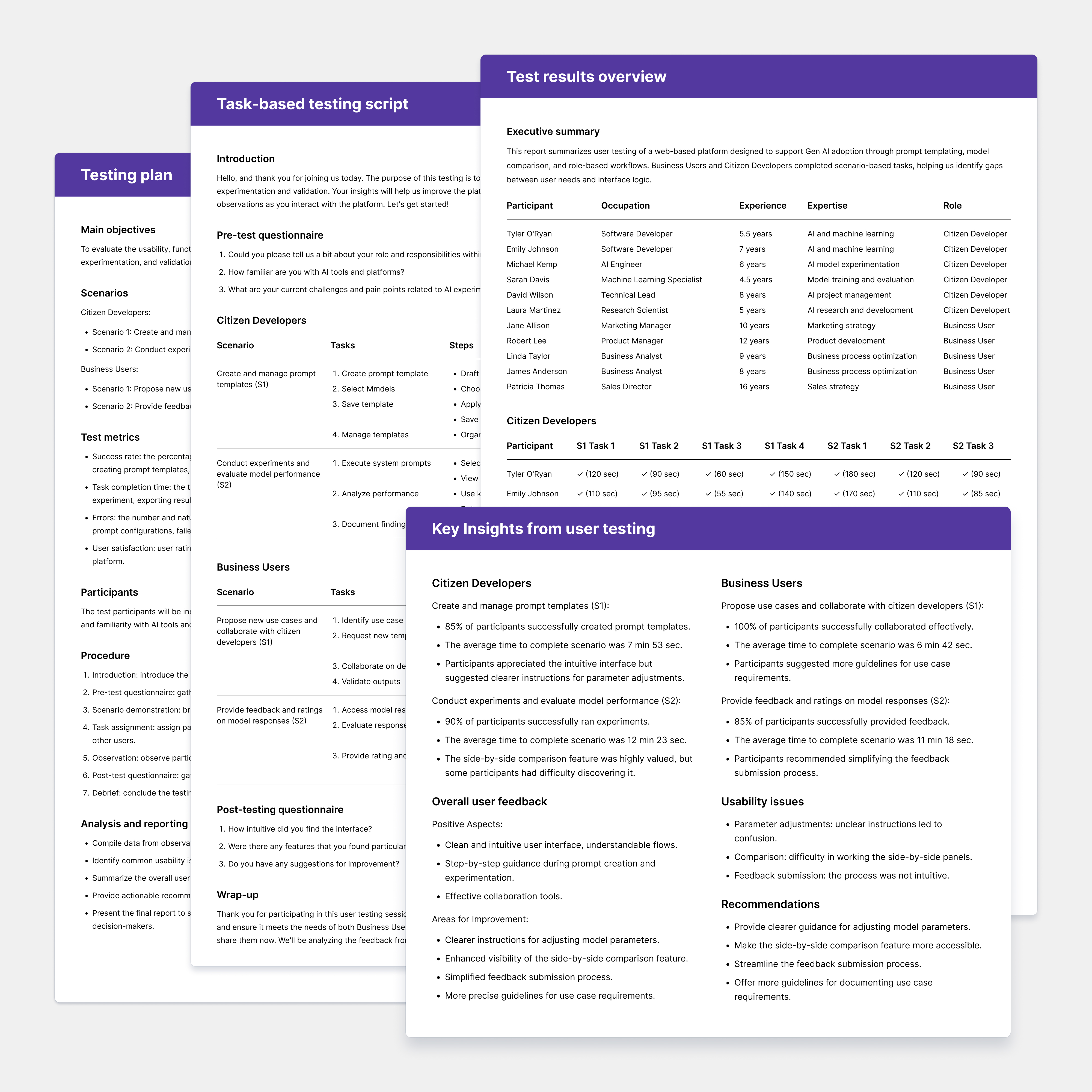 These results showed that the platform could meaningfully improve how teams work with Generative AI. They confirmed the original assumptions and gave a clear path for the next iterations.